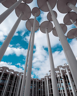 Auf meiner heutigen Tour hat es mich zum nahe gelegenen Gebäude der SAB gezogen. Ich habe dort schon oft fotografiert, aber aufgrund der einzigartigen Architektur macht es doch immer Spaß zwischen den Säulen hindurchzulaufen und neue Perspektiven zu finden.